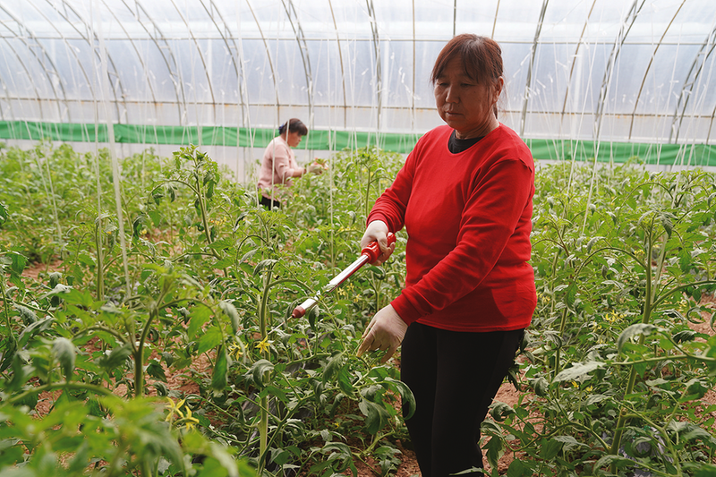 “这几天我们主要在大棚里进行菜苗移植。”在新产品种植展示温室大棚内,村民茹应侠手持一台精巧的电动授粉器,轻柔地触碰西红柿花的花梗。