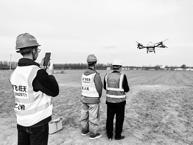 3月25日,在长武县昭仁街道南关村的田间地头,无人机操作人员手持遥控器,为学员指导植保无人机操作技能。
