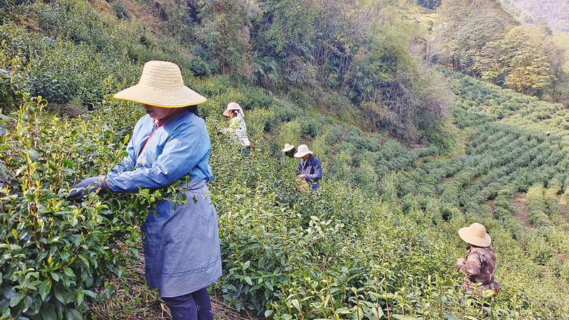 3月26日,村民在采摘茶叶。 本报记者 黄敏 通讯员 杨涛 向莹 文/图