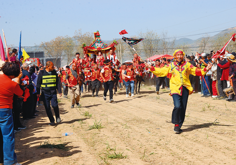 4月11日,蒲城县罕井镇民俗文化活动热闹启幕,省级非物质文化遗产大荔县羌白镇阿寿村跑骡车精彩亮相。