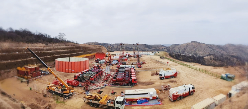 笔者在现场看到,260立方米连续输砂装置与4000立方米软体储水罐已布设到位,为大规模电驱压裂作业提供保障。据介绍,电驱压裂主要是页岩油专项应用的先进技术工艺,相较于传统压裂车组,其数字化管控能力更强、压裂排量控制更精准,压裂效率显著提升,同时大幅降低设备噪音和柴油消耗,实现绿色施工。