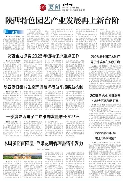 本报讯(记者 赖雅芬)4月10日,陕西省植物保护工 作 总站传来消息,2026年,该站立足全省粮食安全核心目标,紧扣4510万亩粮食播种面积、1350万吨粮食产量保障任务,全面部署年度植物保护重点工作。