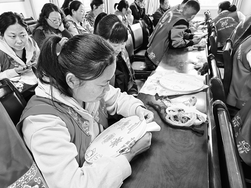 近日,宁强县人力资源和社会保障局在阳平关镇阳平关社区、子龙新区社区开办2026年职业技能培训班,68名群众参加了为期12天的专业培训,让群众实现家门口就业增收。图为4月13日,学员正在练习羌绣。