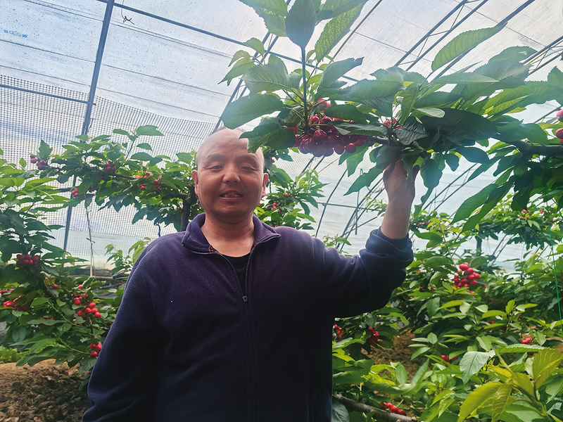 4月8日,种植户马高明站在樱桃树旁,难掩丰收喜悦。 本报记者 张恒 文/图