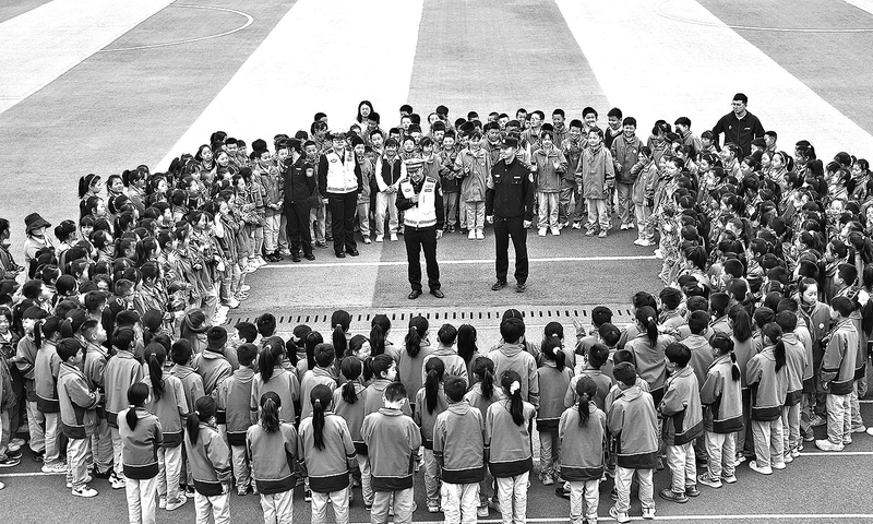 4月13日,大荔县公安局交管大队、禁毒大队联合高铁公安民警走进东府小学,开展安全宣传教育活动。