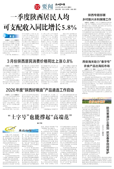 一季度陕西居民人均可支配收入同比增长5.8%