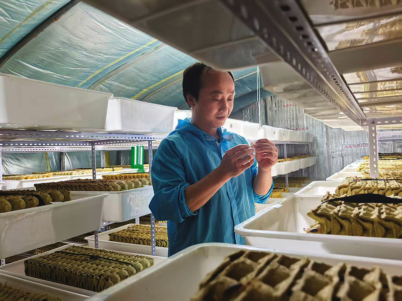 4月21日,王乐乐正在检查蝎子长势。 本报记者 黄敏 文/图