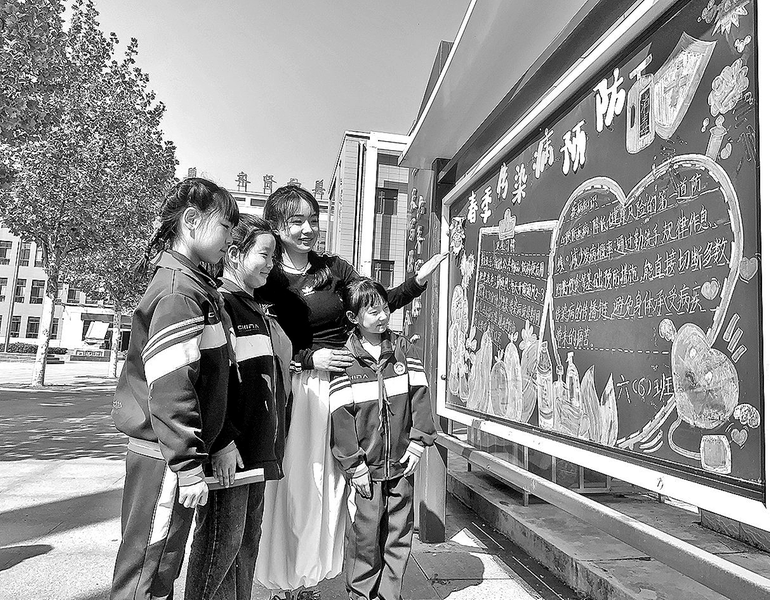 4月23日,千阳县燕伋小学老师带领学生学习春季传染病预防知识。