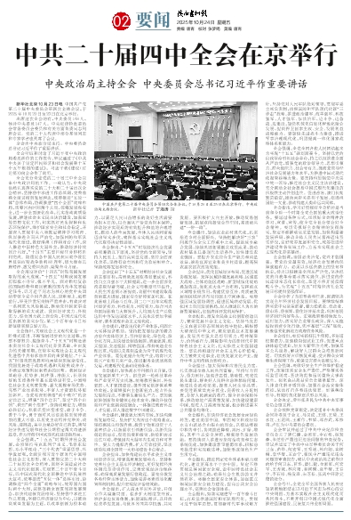 中国共产党第二十届中央委员会第四次全体会议,于10月20日至23日在北京举行。中央政治局主持会议。 新华社记者 丁海涛 摄 新华社北京10月23日电 中国共产党第二十届中央委员会第四次全体会议,于2025年10月20日至23日在北京举行。