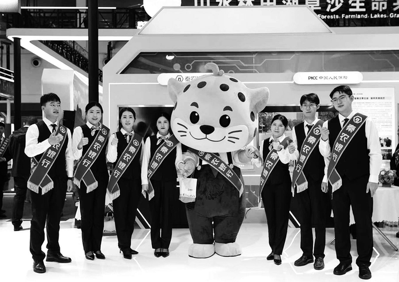 秦农银行全新IP形象吉祥豹“阿吉”互动人偶展示。(资料图) 本报讯(记者 王东宇)10月25日,在第32届中国杨凌农业高新科技成果博览会上,秦农银行紧扣大会主题及“金融助力农业新质生产力发展”布展主题,融合“金融元素”与“农业特色”,特别制作秦农银行全新IP形象吉祥豹“阿吉”互动人偶,通过图文展板、产品手册、视频播放等形式,为参观群众提供业务咨询、政策解读、金融知识普及等服务。