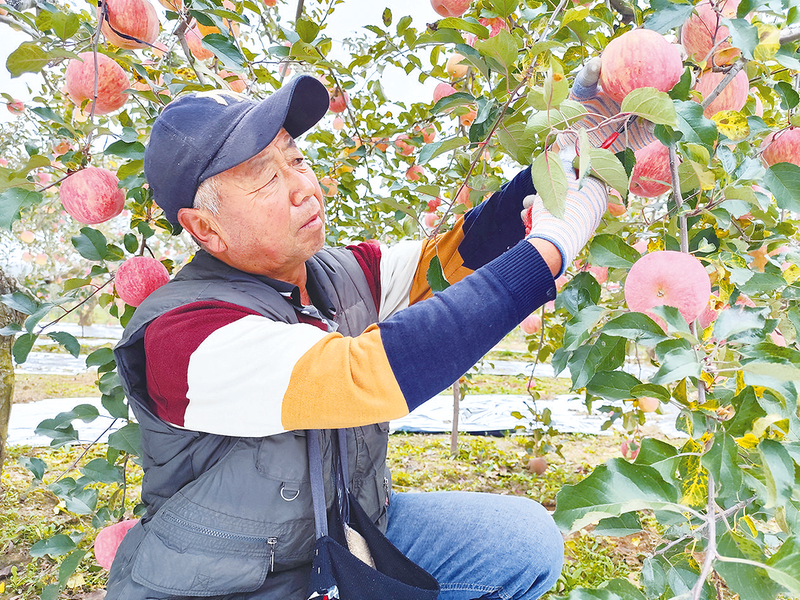 连日来,永寿县果农抢抓农时,加紧采收,忙碌的身影穿梭林间,勾勒出一幅“果园丰产、果农增收”的乡村振兴生动图景。图为11月6日,永寿县监军街道永安村果农安永安在采摘晚熟苹果。