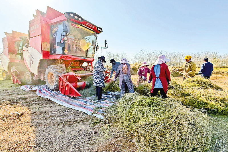 11月22日,大荔县一家公司组织人员正在采收、晾晒中药材沙苑子。