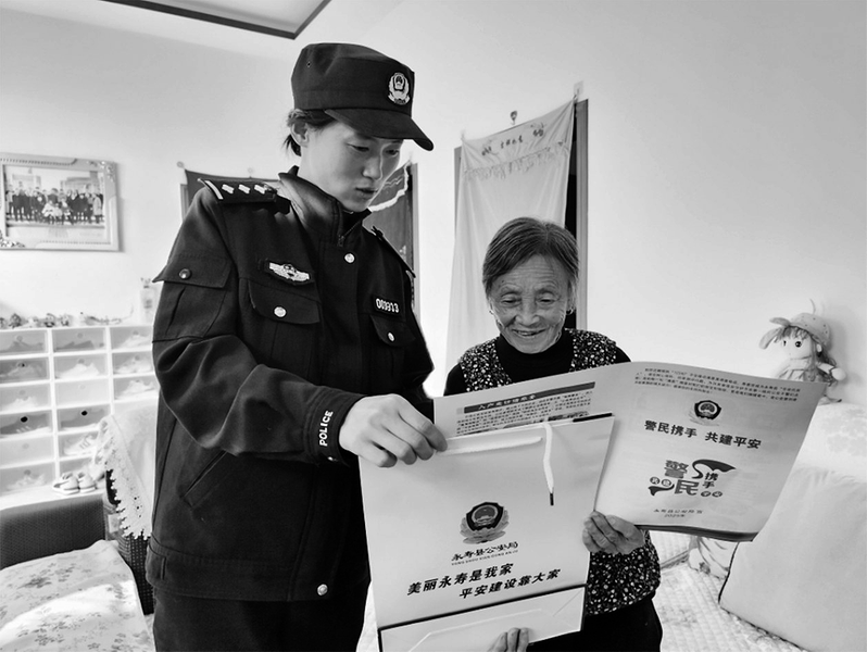 入冬以来,永寿县公安局组织民警进村入户开展平安建设宣传活动。他们深入田间地头、农家院落,以拉家常的方式了解群众急难愁盼,宣传“平安建设”。图为11月21日,民警在监军街道城关村张勤英家中,宣传相关法律知识。